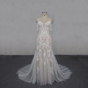 Flattering for Various Body Types: One of the main reasons for the popularity of A-line wedding dresses is their ability to flatter various body types. The A-line silhouette is versatile and suits a wide range of figures, including pear-shaped, hourglass, and petite frames. By cinching the waist and skimming over the hips and thighs, A-line dresses create a balanced and flattering silhouette. This versatility makes A-line dresses a popular choice among brides who want to accentuate their best features while feeling comfortable and confident on their special day.